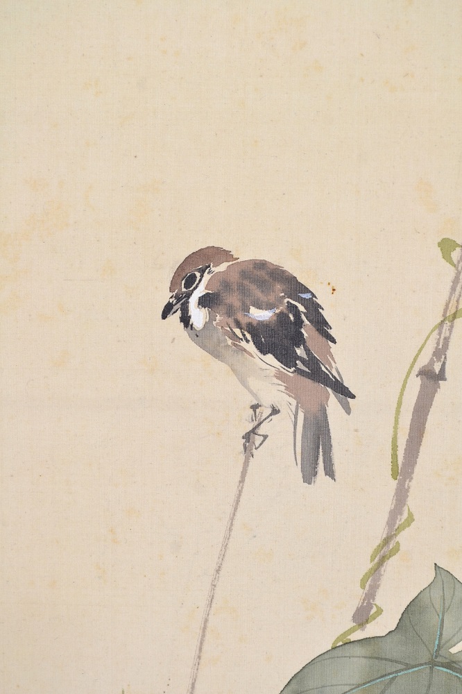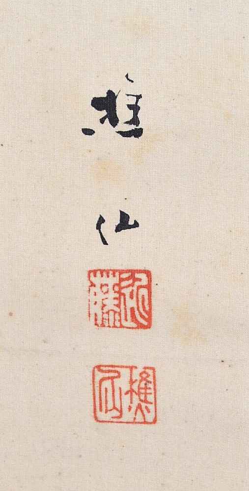 【近藤樵仙(1865~1951)】 熊本市出身の日本画家。倉重仁三郎の長男。名は静吾。 明治2年に近藤家の養子となり、その姓を継いだ。 熊本藩・細川家御用の杉谷雪樵に師事し、明治20年、22歳の時に雪樵とともに上京、5年ほど東京に居ていったん熊本に帰り、 雪樵の没した明治28年に細川家に召されて再度上京した。以後細川家の御用をつとめながら、日本美術協会、 日本画会を中心に作品を発表、宮内省買い上げや受賞を重ね、画壇的地位を固めていった。 初期文展に入選を果たし、明治40年には御前揮毫をおこなうなど、華やかな足跡を残したが、大正3年の文展落選を境に忽然と画壇から身を引き、 東京、大阪、山梨、鎌倉などに居住しながら画壇とは関係のないところで仕事を続けた。 昭和26年、86歳で死去した。 A Japanese-style painter from Kumamoto City. Eldest son of Jinzabur? Kurashige. Given name: Seigo. In 1869, he became the adopted son of the Kondo family and took their surname. He studied under Sugitani Sekk?, the official painter to the Hosokawa family of the Kumamoto domain. In 1887, at age 22, he moved to Tokyo with Sekk?. After staying in Tokyo for about five years, he returned to Kumamoto. Following Sekk?'s death in 1895, he was summoned by the Hosokawa family and moved back to Tokyo. Thereafter, while serving as a retainer for the Hosokawa family, he exhibited works primarily through the Japan Art Association and the Japan Painting Society. He solidified his position in the art world through repeated purchases by the Imperial Household Agency and numerous awards. He achieved success early on by being selected for the Bunten exhibition and, in 1907, performed an imperial calligraphy demonstration, leaving a brilliant trail of accomplishments. However, after failing to be selected for the Bunten in 1914, he abruptly withdrew from the art world. He continued working in places unrelated to the art scene, residing in Tokyo, Osaka, Yamanashi, and Kamakura. He passed away in 1951 at the age of 86. |