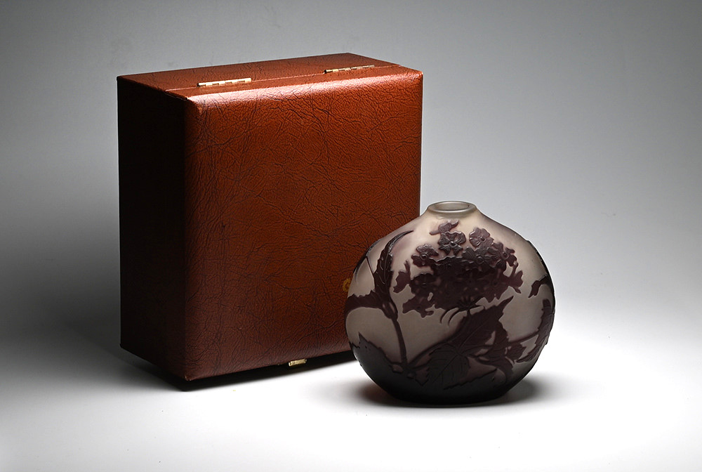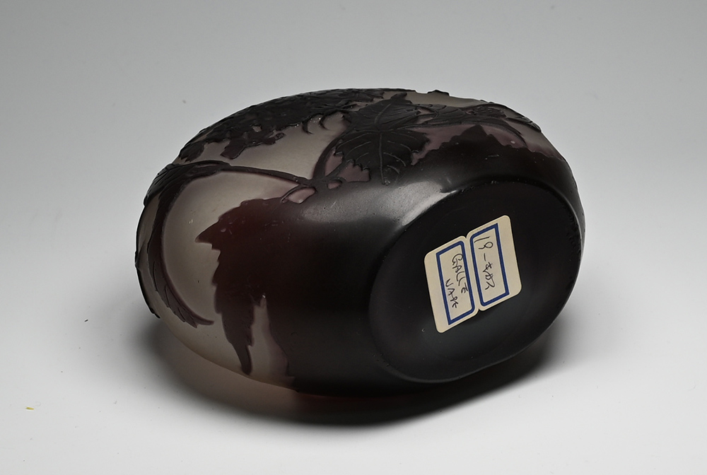 【エミール・ガレ(1846~1904)】 ロレーヌ県ナンシーに生まれる。 父のもとで陶芸を学び、その後は家具とガラス工芸の両分野でアール・ヌーヴォー期を代表する芸術家として活躍した。 1889年と1900年にパリで開催された万国博覧会では最高の栄誉であるグラン・プリを受賞するなど大成功を収め彼の名声は不動のものとなる。 惜しくも1904年に没し、その後も彼の工場は数多くの優れた作品を制作したが、1931年に経営難の為閉鎖を余儀なくされた。 |