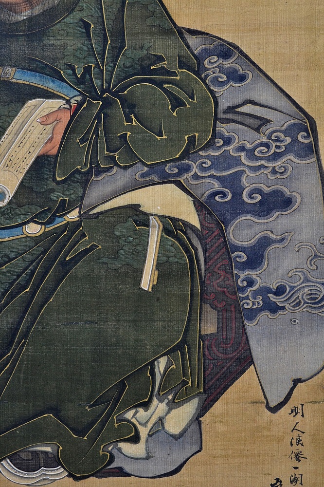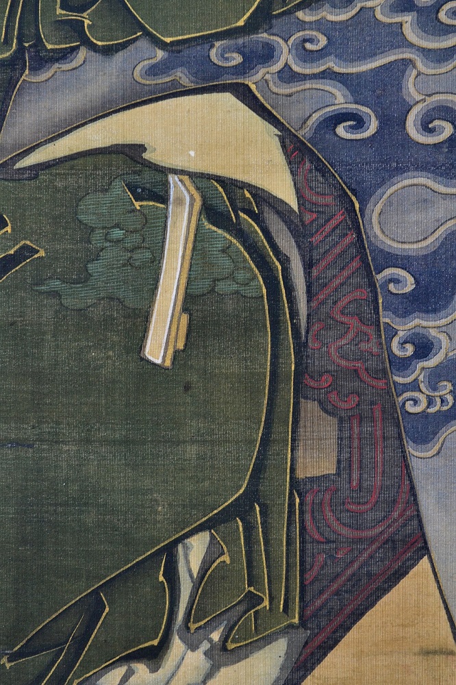 This silk has repair marks. 本紙補修跡あり。 There are damaged areas on the mounting cloth. 表具裂地に剥がれ箇所あり。 |