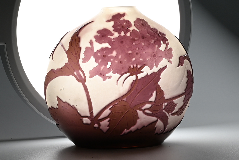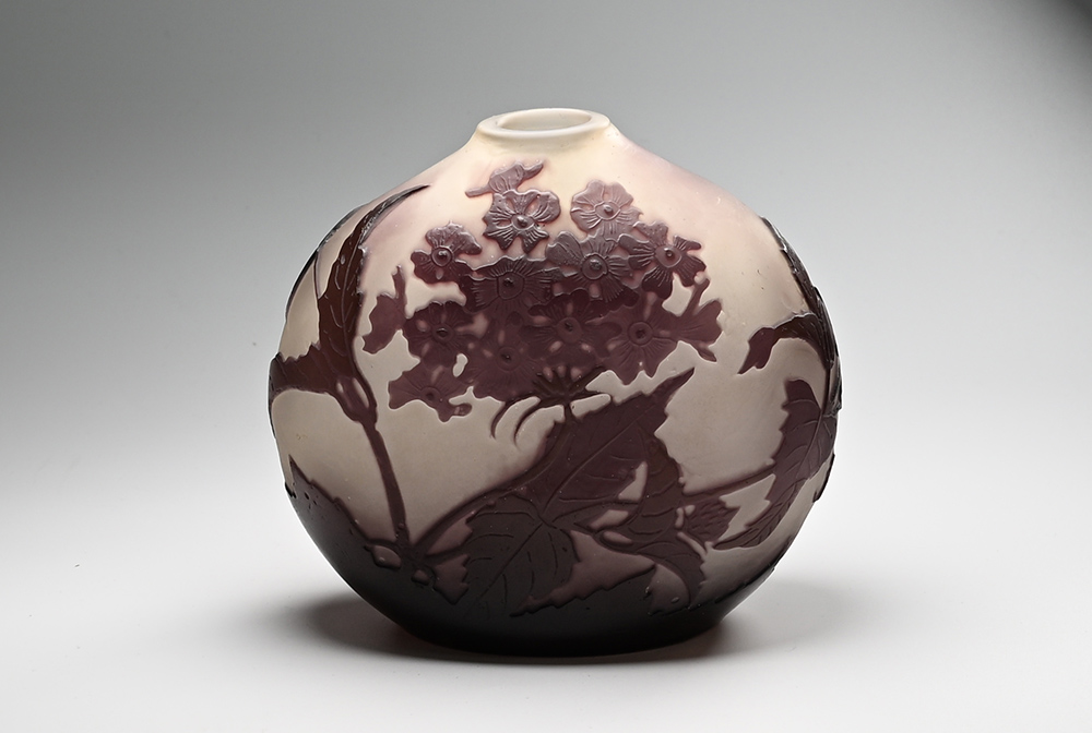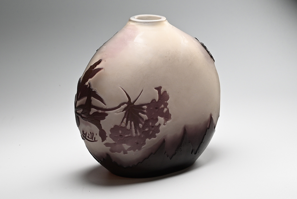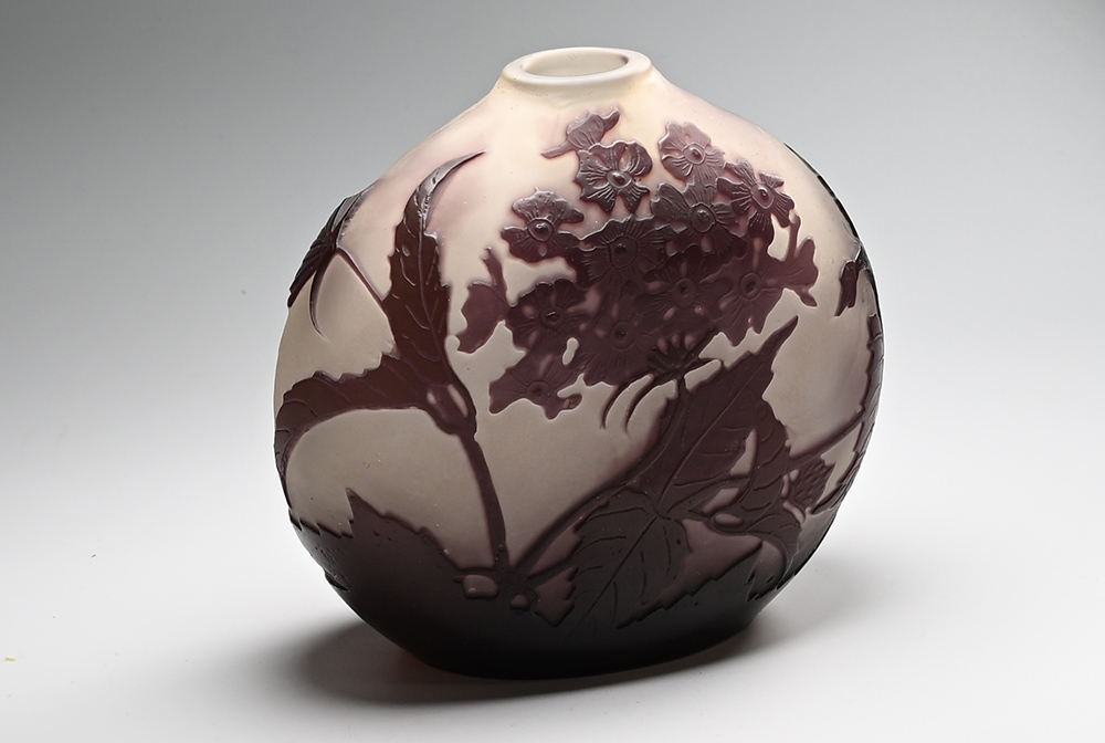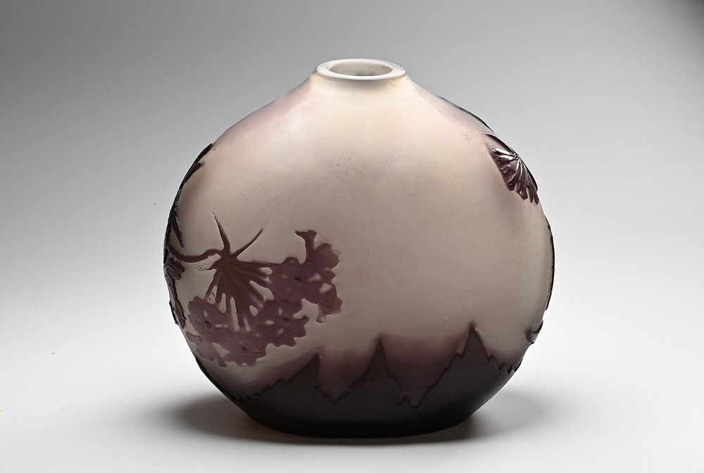 【エミール・ガレ(1846~1904)】 ロレーヌ県ナンシーに生まれる。 父のもとで陶芸を学び、その後は家具とガラス工芸の両分野でアール・ヌーヴォー期を代表する芸術家として活躍した。 1889年と1900年にパリで開催された万国博覧会では最高の栄誉であるグラン・プリを受賞するなど大成功を収め彼の名声は不動のものとなる。 惜しくも1904年に没し、その後も彼の工場は数多くの優れた作品を制作したが、1931年に経営難の為閉鎖を余儀なくされた。 |